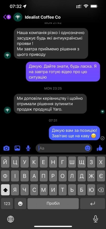 Таким же чином з продукцією YARO зробили "Сільпо" та мережа кафе Idealist.