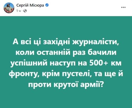 Журналіст Сергій Місюра припустив, що західні журналісти давно не бачили успішного наступу проти крутої армії: