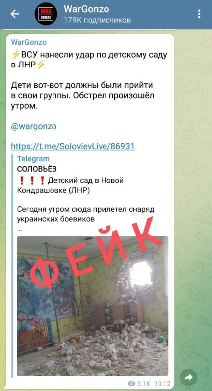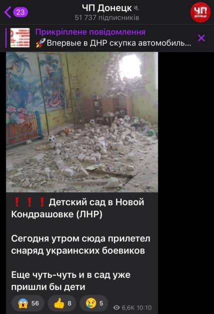 Мабуть, усвідомивши безглуздість новин, ЗМІ почали видаляти цю інформацію. А деякі опублікували нові фейки: мовляв, дірка у дитсадку — нібито справа рук ЗСУ, які "обстріляли свою територію".