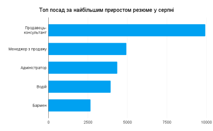 - продавець-консультант — 3438 вакансій (+52% до липня);