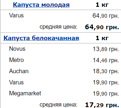 Ціни на капусту в супермаркетах