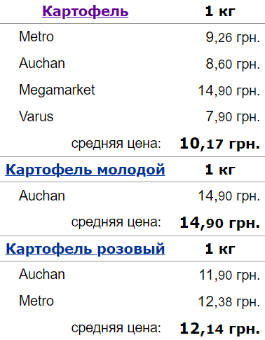Ціни на картопля в супермаркетах