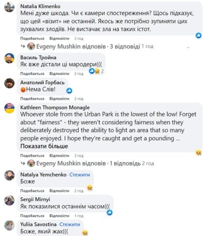 "Повидирали проводи з підземних кабельних каналів. Наразі точну суму збитків ще не визначено, проте попередньо — це буде як мінімум сотня тисяч гривень", — обурюється директор парку.