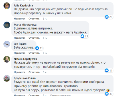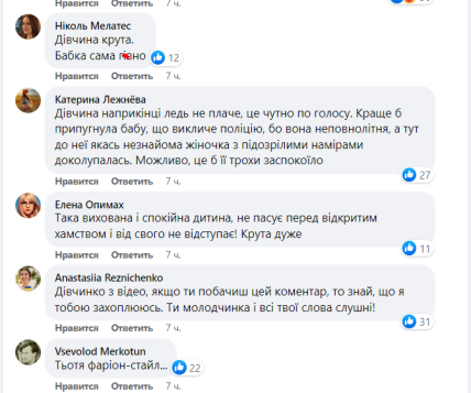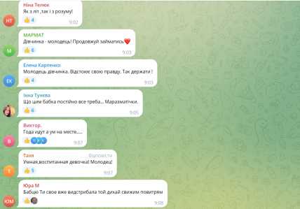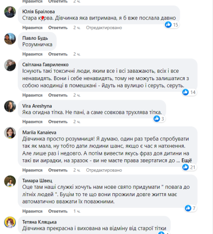 У коментарях переважна більшість користувачів підтримали дівчинку. Дехто наголошував на правильності дій дитини, а були й такі, хто вважає, що бабусю-хамку потрібно було б одразу "слати", адже це однозначно зменшило б час суперечки.