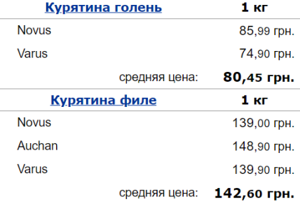 У період з березня по квітень стала дорожчою куряча гомілка. Наразі кілограм продають за ціною 80,45 гривні, а місяцем раніше – по 74,90. Також практично на гривню стала вищою вартість курячого філе. У квітні його середня ціна становить 142,60 грн за кілограм.
