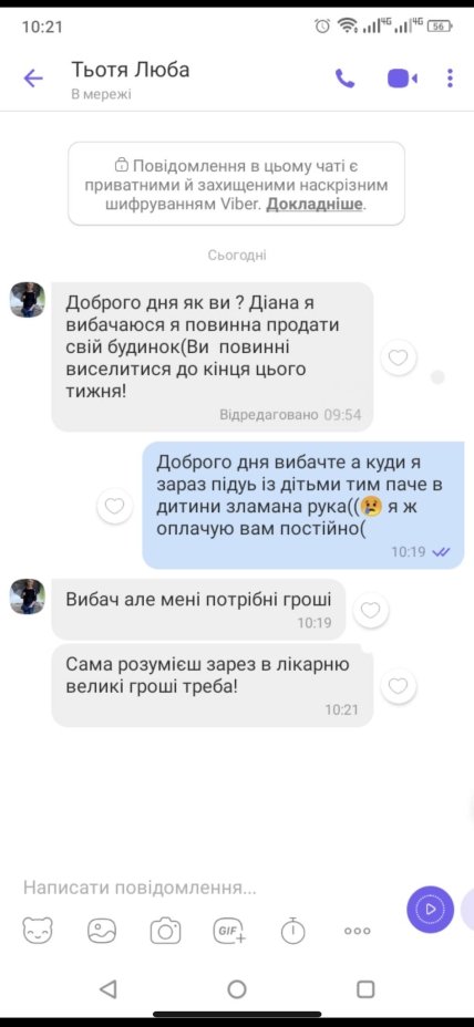 "Сьогодні вранці пише мені "я не хочу жити… тільки не розумію, що з дітьми буде, як помру…" її виселяє з дому, за який сплачувалася оренда 1000 грн на місяць, господиня, бо має продати будинок, щоб лікувати свою дитину від онко (ще одне горе)", — написала волонтер.