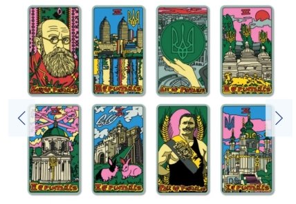 Художниці SestryFeldman створили у воєнному 2022 році колоду з зображеннями Сковороди, Богдана Хмельницького і інших історичних персонажів. У образі диявола на ній виступає хтось, дуже схожий на путіна. Також на ринку можна знайти колоди "Glory to Ukraine" (720 гривень), "Оракул незламної України" (950 грн) і ще з десяток подібних варіантів карт для ворожіння.