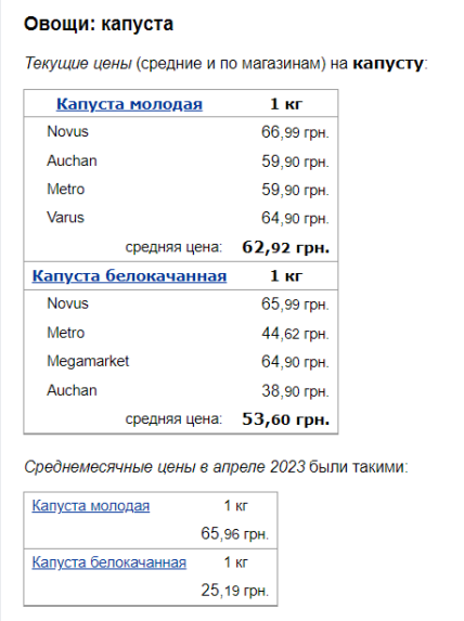 Капуста білокачанна за місяць подорожчала майже на 30 гривень. Вартість цього овочу змінилася з 25,19 до 53,60 грн. При цьому молода капуста навпаки до кінця травня подешевшала.