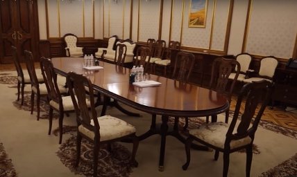 Далі співбесідники проходять через приймальню до "білої зали" – кімнати, де відбуваються перемовини Єрмака і його заступників.