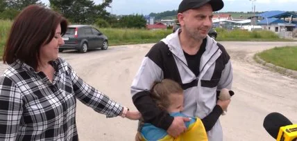 Коли колишній політв’язень побачив дружину та дочку, він ледве стримував сльози. Дружина Оксана, яка бачила чоловіка востаннє три роки тому, теж була на межі емоцій.