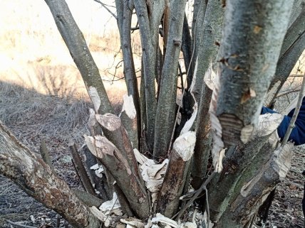 — Намагаємося їх не турбувати. Є опосередковані методи спостереження. Наприклад, обліковуючи запаси деревини, які вони роблять на зиму (бобри у сплячку не впадають, і в холоди сидять у хатках та норах, живучи на запасах), ми можемо дізнатися про кількість особин на певній території. Пізньої осені у межах проживання родин — у радіусі 300 метрів від берегів річки — рахуємо всі пеньки кущів і дерев. На зиму одному боброві потрібно 70 кормових одиниць. Так довідуємось, чи повноцінна родина, тобто, чи з дітьми, чи вона в цьому сезоні живе сама. По слідах різців на пеньках можна судити, старим чи молодим бобрам вони належать. До речі, долотоподібні різці у бобрів, які ростуть усе життя, мають тверду емаль спереду і м’якшу ззаду, тому добре заточуються.