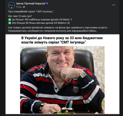 "Але чомусь десятки мільйонів зливають на фільм про сумнівного персонажа на фото. Прикриваючись необхідністю створення контенту для інформаційної війни", — зазначили в ЦПД.