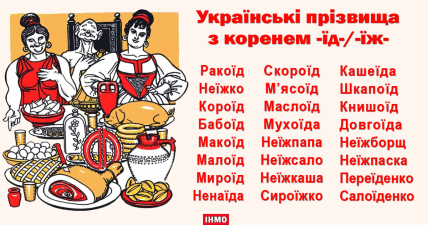 На додачу до цього у минулі часи прізвиська та прізвища утворювалися за харчовими звичками людини. Такі прізвища мають суфікси -їд-/-їж-: