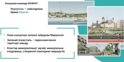 Голандці запропонували, як буде виглядати "Азовсталь" і узбережжя Маріуполя. Коли запитаєш маріупольців, що для них головне, вони кажуть: металургія, море і зелене місто. І голландці вклались у своєму проєкті у море, "Азовсталь" і озеленення.