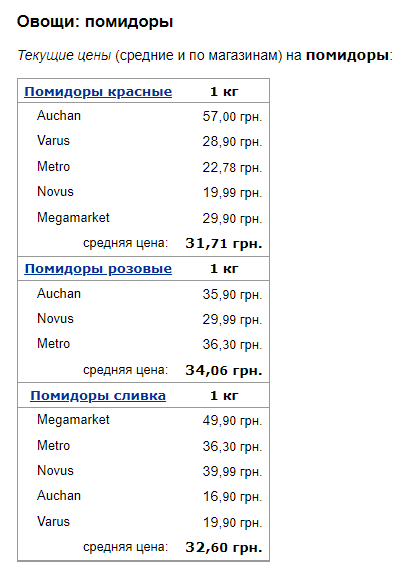 Найбільше до кінця літа подешевшали помідори. Так, червоні помідори впали у ціні із 61,31 грн до 31,71. Таким чином, за місяць різниця у вартості становила 30 гривень. Тим часом рожеві помідори за цей же час стали дешевшими на 40 гривень і зараз їхня ціна становить 34,06. І майже на 50 гривень подешевшали помідори вершка. У липні їх продавали по 80,18, а зараз по 32,60.