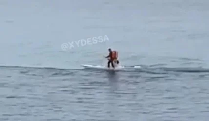 В Одесі курʼєр так поспішав доставити клієнтам замовлення, що побіг до них прямо по морю.