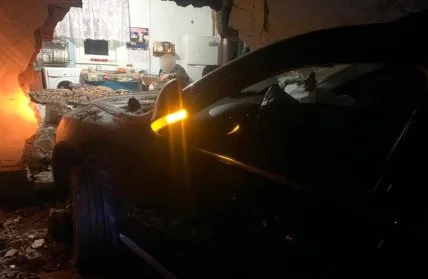 Машина врізалася в стіну будинку, "організувавши" там новий просвіт і наполовину опинившись посеред кухні. За щасливим збігом обставин, господаря житла не було в постраждалій кімнаті, тому він відбувся лише зіпсованим майном і, звісно, непоганим переляком.