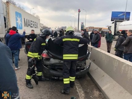Як уточнюють місцеві ресурси, водій Mercedes в’їхав у KIA сріблястого кольору, після чого вдарив ще й евакуатор, а той у свою чергу влетів у фуру.