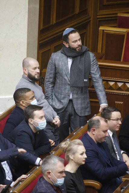 Крім цього, кореспондентові "Телеграфу" вдалося впіймати в об'єктив і народного депутата Олександра Дубинського, який з'явився в Раді в іудейському стосі з написом "Dnipro Jewish Community".