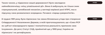 Варто також відзначити, що окрім брехні та систематичних маніпулятивних тез, Путін іноді згадував і правдиві факти. Проте, у порівнянні з брехнею, їх було вкрай мало.