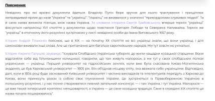 Українські волонтери вирішили детально розібрати промову російського президента Володимира Путіна після офіційної заяви про визнання "ДНР" та "ЛНР" "незалежними державами" та перевірити її на наявність фейків та маніпуляцій.