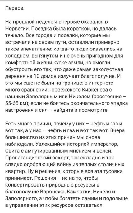 У своєму пості він розповів про нещодавню поїздку до Норвегії, після чого запропонував порівняти норвезький Кіркенес із російським Заполярним чи Нікелем.