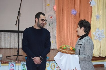 У сюжетах видно, що дітям роздають коробки з цукерками і вітальні картки з обличчям Трухіна.
