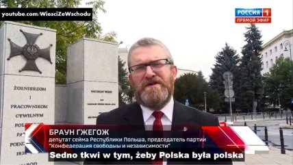 До мережі потрапили знімки його виступу на телеканалі "Росія1". Також Гжегож Браун відомий своїми антиукраїнськими висловлюваннями. Польське видання Wprost розповіло подробиці скандалу.