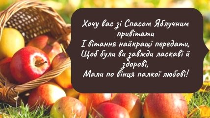 Вітаю з Яблучним Спасом і побажати хочу щедрих дарів природи і багатого врожаю, великої радості душі і доброї надії в серці, щирого щастя і вірного благополуччя, барвистого світу і чуйних людей на життєвому шляху.