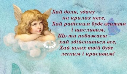 Вітаю з іменинами! Бажаю завжди знаходити спільну мову зі своїм ангелом! Щоб він тобі завжди й у всьому допомагав, а ти, своєю чергою, не змушував його за себе червоніти!