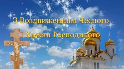 У свято Воздвиження Чесного і Життєдайного Хреста Господнього хочу всім серцем побажати жити у благодаті, світі, вірній любові та доброї надії. Нехай у твою хату стукають тільки добрі люди, тільки радісні вісті, тільки щасливі дні.