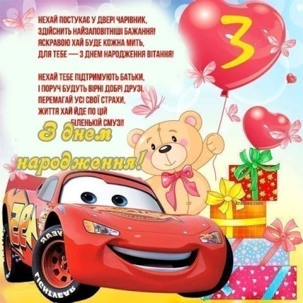 Наш рідний синочок, тобі сьогодні виповнюється 3 роки! Ти у нас такий чудовий хлопчик! Гарний, бешкетний, розумний, енергійний! Ти наше щастя та радість. Бажаємо тобі міцного здоров’я, гарного настрою, багато енергії, допитливості та добрих друзів! З днем народження!