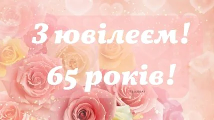 - Від щирого серця вітаю Вас з 65-річчям! Я Вам бажаю стати не старшою, а досвідченою, зустріти не ще один рік свого життя, а відкрити в ньому нову сторінку щастя та добробуту. Нехай краса Ваша не меркне, нехай серце не перестає мріяти, нехай душа, як і раніше, прагне світла радості. Бажаю кохання сім’ї та міцного здоров’я.