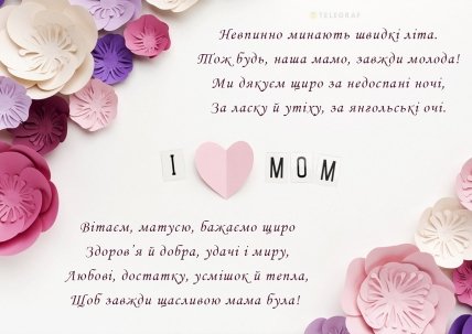 "Телеграф" створив колекцію вітальних картинок мамі від дочки, які прикрасять свято та подарують незабутні емоції. Листівку мамі з днем народження можна безкоштовно завантажити та відправити у соціальних мережах чи месенджері, яким вона користується.