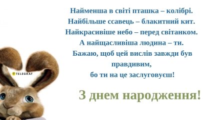 З днем народження, друже. Бажаю бути веселим, як Вінні-Пух з барило медового настрою😎, інтелігентним, як Кролик з пронизливим поглядом і грамотною промовою🐰, чудним, як Сова зі своїми приколами та жартами. І ніколи, чуєш — ніколи не сумуй, як сумний віслюк Іа 🎈.