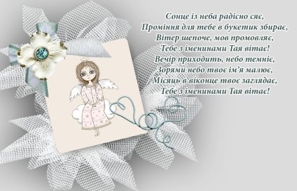 З Днем ангела, Таїсія! Щиросердечні вітання в листівках і картинках на українській мові