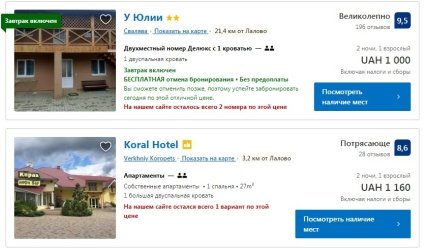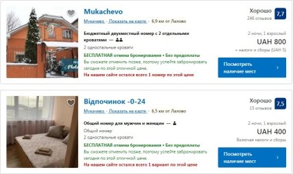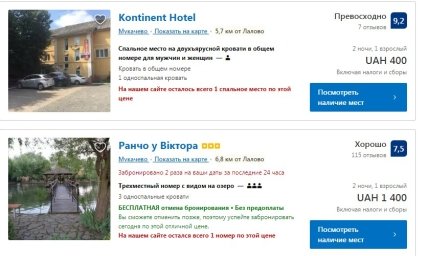 Так, Booking пропонує різні варіанти відпочинку в Карпатах на різний гаманець. Ціни на відпочинок в Карпатах за добу варіюються від 800 і до 8 тисяч гривень (в останньому варіанті мова йде про віллу). В середньому за 1000 гривень на добу можна зняти двомісний номер з видом на гори і телевізором-плазмою в номері і сніданком. Великою популярністю у туристів користуються Мукачеве, Свалява.