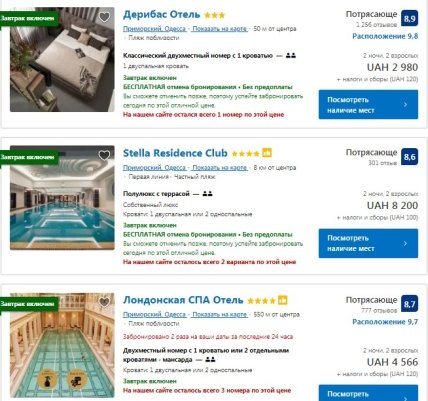 Що стосується Одеси, то ціни тут стартують від 2000 гривень за добу. Двомісний номер з 1 ліжком чи двома окремими ліжками буде коштувати від 4500 до 6500 гривень.