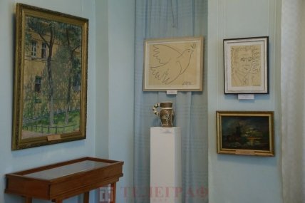 В іншому залі – варіація знаменитого "Голуба миру" імпресіоніста Пабло Пікассо, а поруч із "Голубом з гілкою маслини" розмістилася кераміка "Панно. Пориначі" та "Потрет Ф.-Ж. Кюрі".