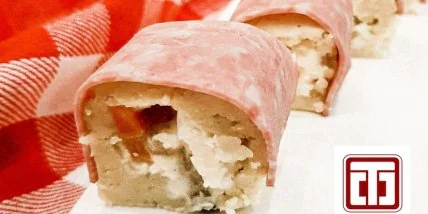 Перед подачею нарізати на 8 рівних шматочків і покласти шматочок шинки. Смачногоǃ
