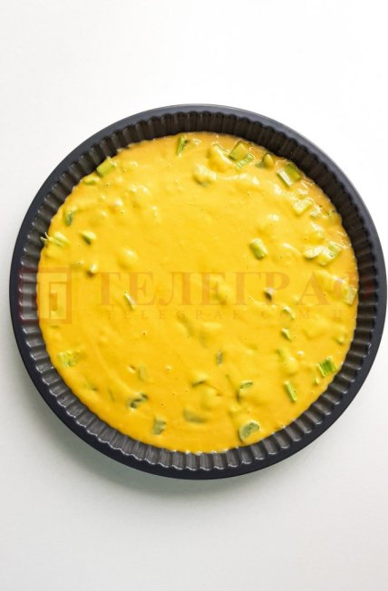 Вилити частину тіста в форму, зверху викласти ревінь і наверх вилити інше тісто.