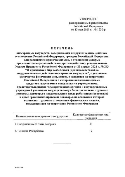 Як повідомляє сайт правової інформації РФ, в нього потрапили лише дві країни - США і Чехія.