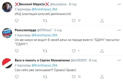 Коментатори з іронією нарекли новину "сенсацією", дивуючись, навіщо Путін записує свої ж слова. Деякі жартували, що російський президент пише таємне послання і запустили інтернет-меми з вигаданими новинами-"сенсаціями" в дусі "Путін кахикнув".