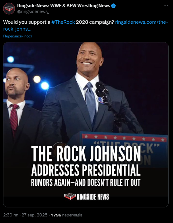 - Дуейн "Скеля" Джонсон розповів про плани піти у політику