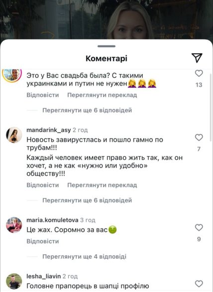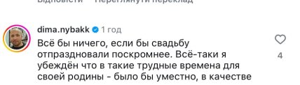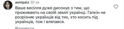 Зокрема, коментатори зазначили, що весілля варто було б відгуляти трохи скромніше, оскільки українці у себе на батьківщині проживають дуже складні часи.