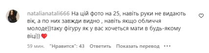 - "На цій фото на 25, навіть руки не видають вік, а по них завжди видно, навіть якщо обличчя молоде. Таку фігуру як у вас хочеться мати в будь-якому віці",