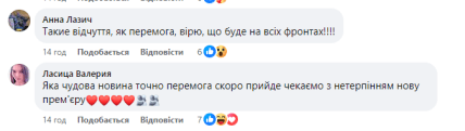 - "Яка чудова новина точно перемога скоро прийде чекаємо з нетерпінням нову прем'єру".