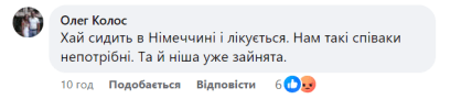 - "Хай сидить в Німеччині і лікується. Нам такі співаки непотрібні. Та й ніша уже зайнята".