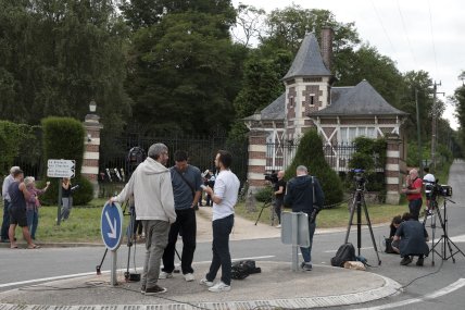 Біля території маєтку патрулює поліція, а журналісти разом з операторами знімають репортажі.
