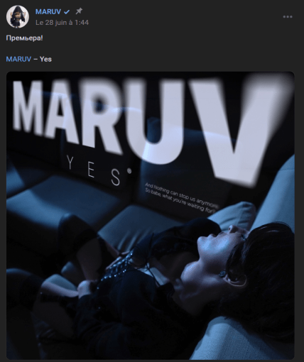 Офіційну сторінку Maruv в Інстаграмі закрито для українців. Щоб побачити, які повідомлення вона публікує, потрібно використовувати VPN. Maruv не висловлюється з приводу війни і продовжує зберігати мовчання.
